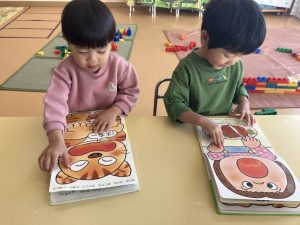 お部屋でも好きな絵本を選び読む姿が、、、♡📕