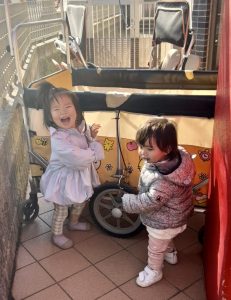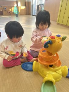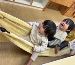 友だちへの興味が芽生え、関わろうとする姿が増えてきているハッピーハウスの子どもたち♡