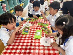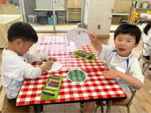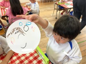 お当番のグループが決まってからは、お当番表に貼る自分の似顔絵を描きましたよ🖍️