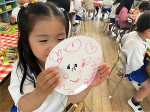 「できたよ~」と先生やお友だちに見せて、お友だちの似顔絵を見て気づいたことや感じたことを言葉にする姿が見られましたよ👀✨