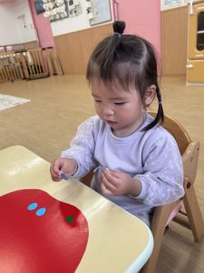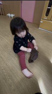 最近は、自分で靴下をはこうと頑張る姿も見られるようになりました🧦 少し難しくても「やってみよう」とする姿に、子どもたちの成長を感じています♪