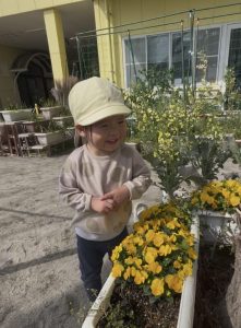 園庭では草花を見つけると、立ち止まってじーっと眺める姿も👀