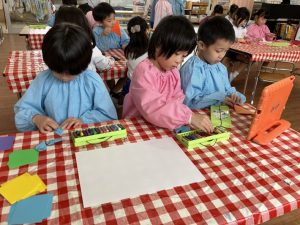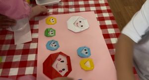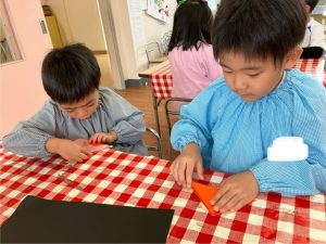 お友だちと一緒に折り紙とクレヨンで季節の表現を楽しみました😊