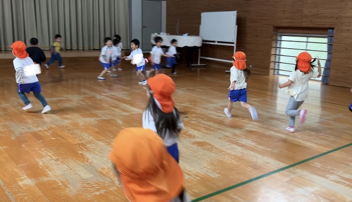 今日は体育館で「しっぽとりゲーム」をしました😆