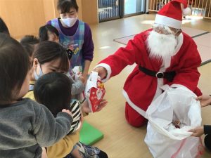 サンタさんから「はい、どうぞ。」とプレゼントをもらうと、笑顔のお友だちがいっぱいになりました🎁