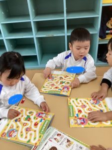 シール貼りが終わったら、好きなページをお友だちと一緒に楽しみました。