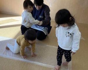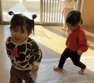 中には気持ちがよかったようで、プチプチマットの上にゴロゴロしているお友だちもいたり、プチプチマットの上でジャンプをして楽しんでいるお友だちもいましたよ♡