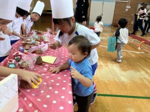 昨日は幼稚園のお店屋さんごっこにも行ってきました🍣🍰🍨