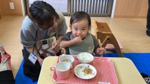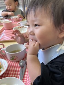 にっこり笑顔になり、見てくれているお母さんたちに手を振りつつ