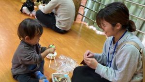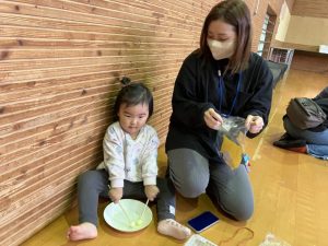 その後、一緒にスキンシップ遊びをしたり、動物さんの太鼓作りを楽しみました🐰