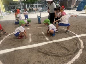 園庭の真ん中には、子どもたちからのリクエストで、土俵も完成していました‼