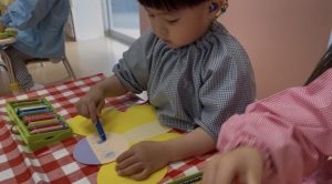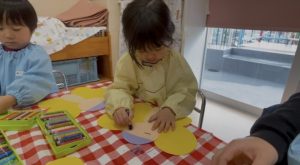まずはじめに蝶々にお顔をクレヨン描きました🖍️