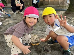 お砂場にある貝殻を一生懸命探し、大事に持って帰る子どもたちでした。