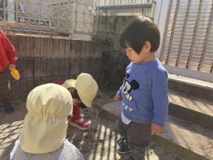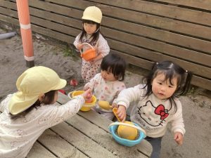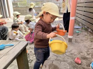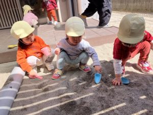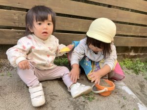 子どもたちはスコップやバケツを持って砂を入れたり、石や草花を見つけたりと伸び伸びと遊ぶ姿がありました♡
