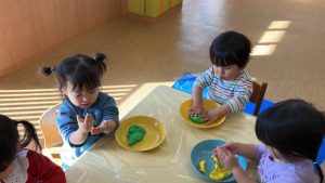 HOME > 幼稚園の様子 > 小麦粉粘土で遊んだよ♡