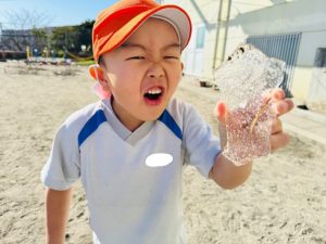 昨日は一日冷え込み、朝園庭に出てみると桶の中に氷ができていました!それを見た子どもたちは大喜び😆氷ができてたよ!と嬉しそうに教えてくれました😁