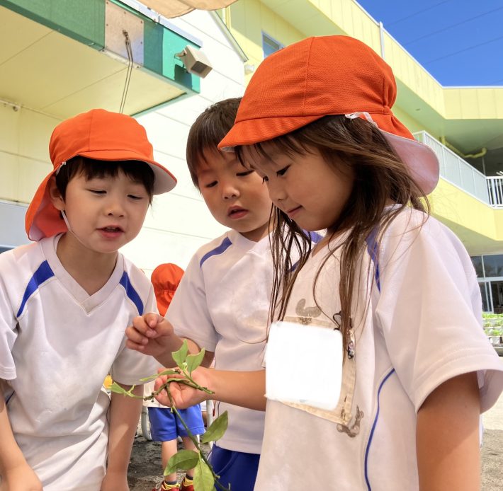 他にも、アゲハ蝶の幼虫のために毎日金柑の葉っぱを入れ替えて大切にお世話をしている子どもたちです😊