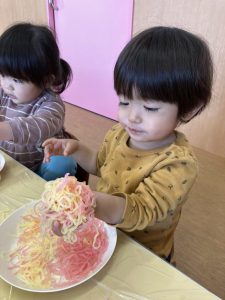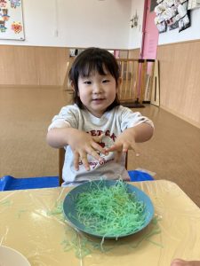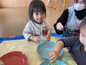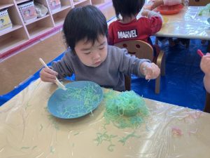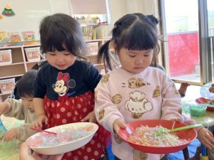 カラフルな春雨が登場すると…子どもたちはとってもワクワクしている様子でした😊♡