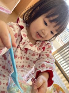 手のひらいっぱいに感触を味わいながら、「ちゅるちゅる〜!」「気持ちいいね🎵」と気づいたことを教えてくれる姿もありましたよ✨
