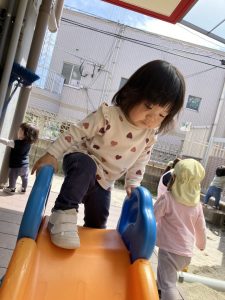 自分で登って滑り降りることを何度も繰り返し楽しんでいました🤗