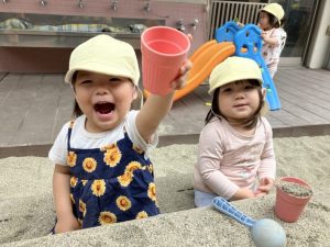 お天気の良い日は砂場へ出て、外遊びを楽しみましたよ🎵