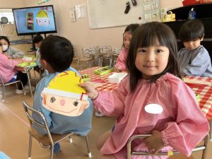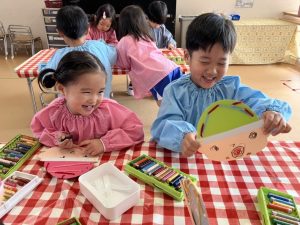 帽子が完成した後は自分たちの顔を描いて仕上げました🖍️毛糸帽子を被る自分たちをイメージしながらお顔を描いていましたよ👧🏻🧒🏻
