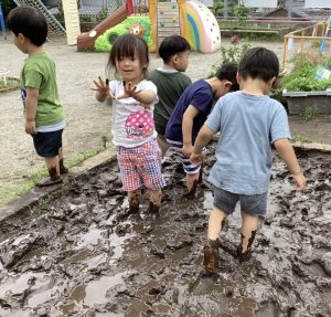 また、泥の感触を沢山味わい「楽しかった」としろかきを楽しんだ子どもたちでした。