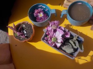 お母さんに素敵な花束のプレゼントを作ったり、沢山の花びらを使って綺麗な色水を作る子どもたち💐