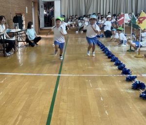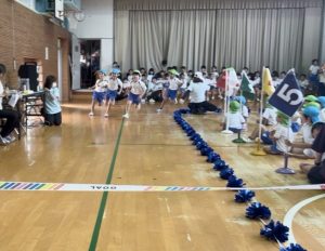 その後は年中組さんの子ども競技をしました!恐竜になりきって卵を運んでゴールまで繋ぐことができました🦖