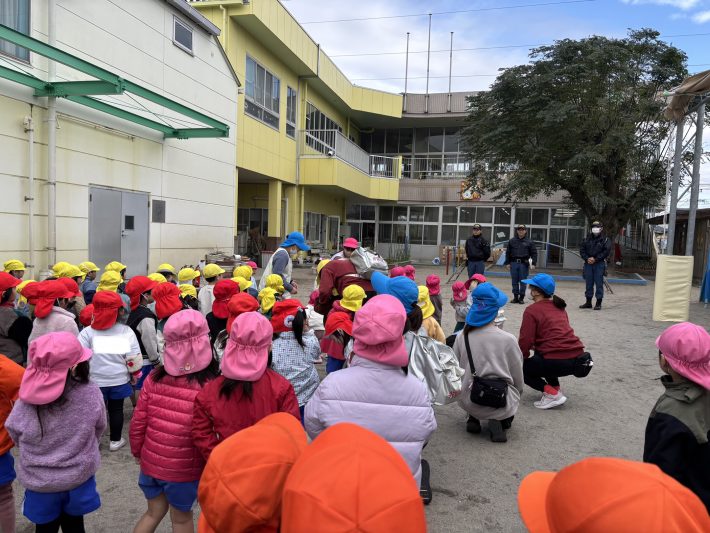 年長組さんは消防車を見学し、興味津々の様子でした😊