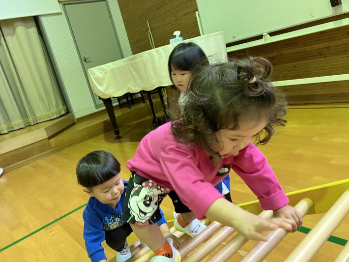 今日は雨だったということもあり体育館で遊びました。新入園児のお友だちは初めての体育館でお友だちと鬼ごっこをしたり、遊具で遊んだりと思いっきり体を動かし、初めての体育館を楽しむことができました🏃♂️