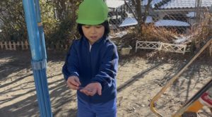 園庭には、まだ雪が積もっているところがあり、みんなで園庭に遊びに行きました😆