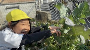 ブロッコリーが成長していることに気づいた姿やお砂遊びでアイスやケーキを作る