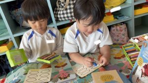 今日のシール遊びはいつもと違い、クレヨンで描くところからのスタートだったので、子どもたちもワクワクしながらお話を聞いていました🎶