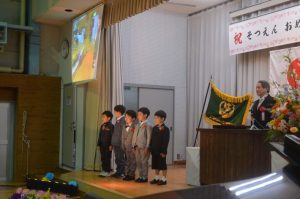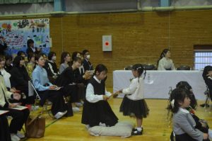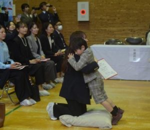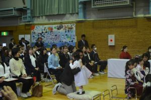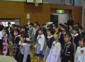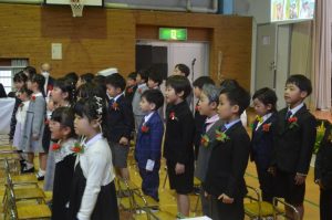 修了証書を受け取り、「たいせつな ともだち」の歌を歌い