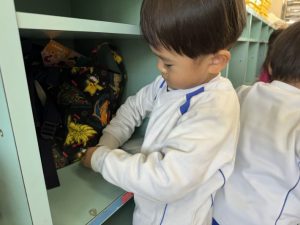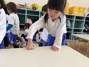 写真立て作りが終わった後は、自分たちの道具箱や鞄棚など1年間お世話になったお部屋の片付けを行いました。道具箱の片付けをしながら「ありがとう」と言葉を伝えたり、一生懸命綺麗に掃除をしたりと、自分たちのお部屋への感謝の気持ちを込めて片付けに取り組むことができました✨