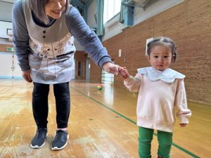 ゆき組さんは体育館で遊具に登ったり、体育館の中を思いっきり走ったりと先生たちと楽しく過ごしました😊