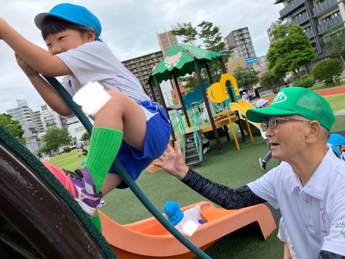滑り台をお友だちと一緒に滑ったり、