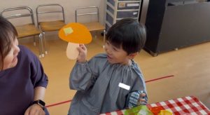 カラフルで美味しそうなきのこを先生やお友だちに見せて嬉しそうな子どもたちでした🌈